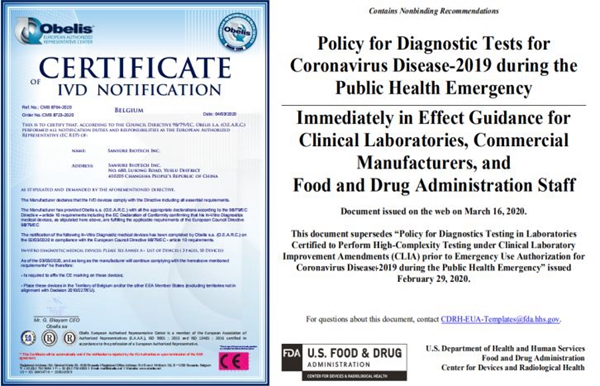 好博体育生物作为抗击疫情的一份重要力量,3月3日新型冠状病毒核酸检测试剂已获欧盟CE认证。此外,公司已经启动美国FDA EUA(紧急使用授权)申请,且Pre-EUA已受理,根据美国FDA 3月16日最新发布的新冠肺炎相关检测政策指南,好博体育生物新型冠状病毒核酸检测试剂盒可在美国供临床使用,服务当地疫情防控。